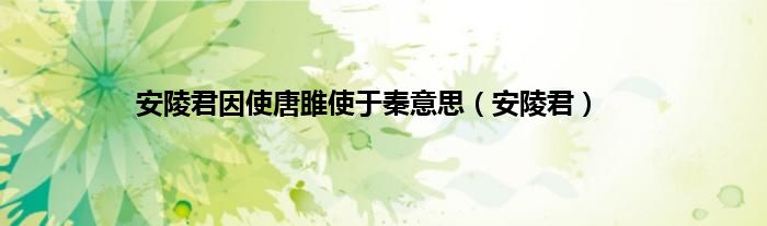 以上就是【安陵君因使唐雎使于秦意思,安陵君】相关内容。