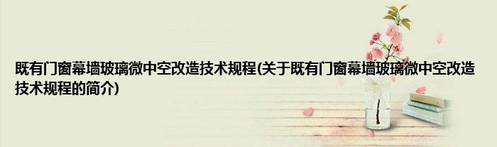 本文关于既有门窗幕墙玻璃微中空改造技术规程的简介就讲解完毕,希望对大家有所帮助。