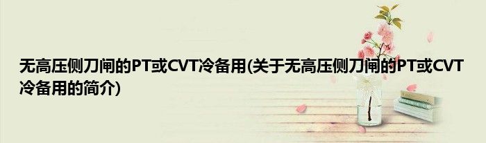 大家好,无高压侧刀闸的PT或CVT冷备用,关于无高压侧刀闸的PT或CVT冷备用的简介很多人还不知道,现在让我们一起来看看吧!
