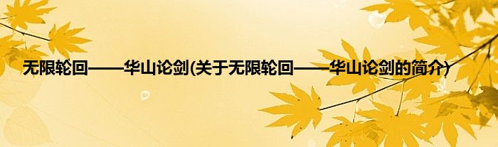 本文关于无限轮回——华山论剑的简介就讲解完毕,希望对大家有所帮助。