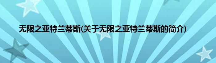 大家好,无限之亚特兰蒂斯,关于无限之亚特兰蒂斯的简介很多人还不知道,现在让我们一起来看看吧!