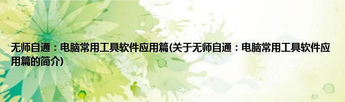 大家好,无师自通:电脑常用工具软件应用篇,关于无师自通:电脑常用工具软件应用篇的简介很多人还不知道,现在让我们一起来看看吧!