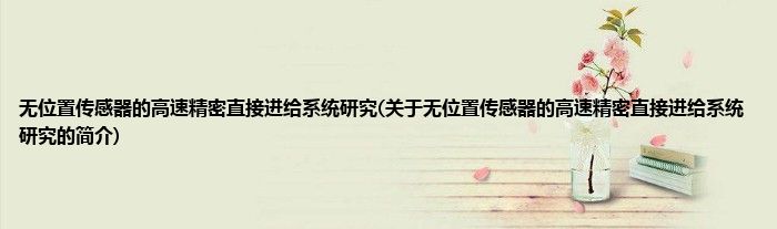 大家好,无位置传感器的高速精密直接进给系统研究,关于无位置传感器的高速精密直接进给系统研究的简介很多人还不知道,现在让我们一起来看看吧!
