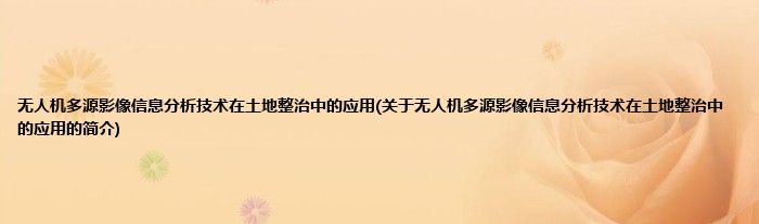 大家好,无人机多源影像信息分析技术在土地整治中的应用,关于无人机多源影像信息分析技术在土地整治中的应用的简介很多人还不知道,现在让我们一起来看看吧!