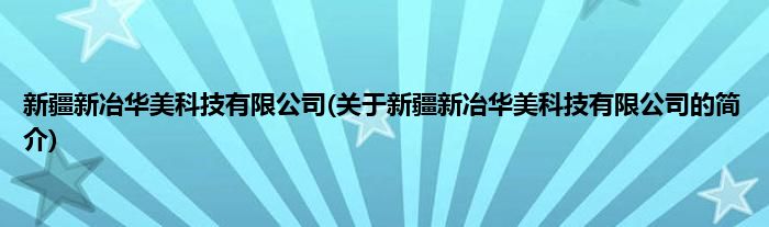 本文关于新疆新冶华美科技有限公司的简介就讲解完毕,希望对大家有所帮助。