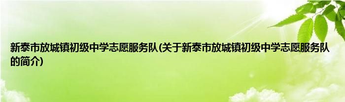 本文关于新泰市放城镇初级中学志愿服务队的简介就讲解完毕,希望对大家有所帮助。