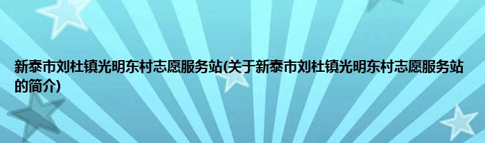 本文关于新泰市刘杜镇光明东村志愿服务站的简介就讲解完毕,希望对大家有所帮助。
