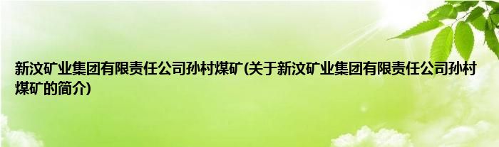 新汶矿业集团有限责任公司孙村煤矿(关于新汶矿业集团有限责任公司孙村煤矿的简介)