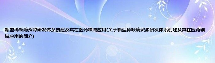 本文关于新型稀缺酶资源研发体系创建及其在医药领域应用的简介就讲解完毕,希望对大家有所帮助。