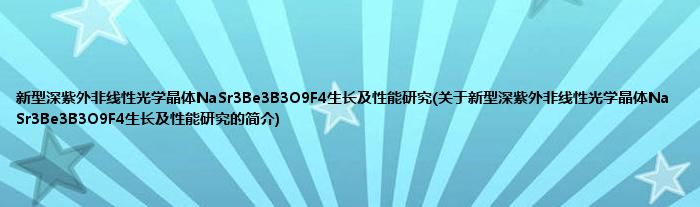 本文关于新型深紫外非线性光学晶体NaSr3Be3B3O9F4生长及性能研究的简介就讲解完毕,希望对大家有所帮助。