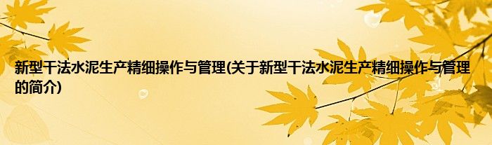 本文关于新型干法水泥生产精细操作与管理的简介就讲解完毕,希望对大家有所帮助。