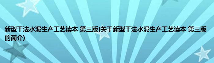 本文关于新型干法水泥生产工艺读本 第三版的简介就讲解完毕,希望对大家有所帮助。