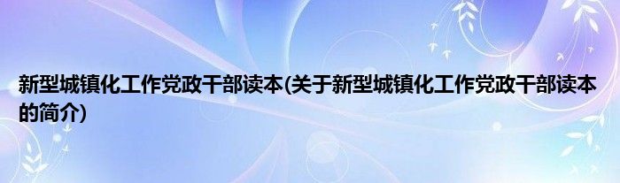 本文关于新型城镇化工作党政干部读本的简介就讲解完毕,希望对大家有所帮助。