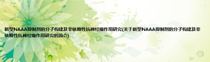 大家好,新型NAAA抑制剂的分子构建及非依赖性抗神经痛作用研究,关于新型NAAA抑制剂的分子构建及非依赖性抗神经痛作用研究的简介很多人还不知道,现在让我们一起来看看吧!