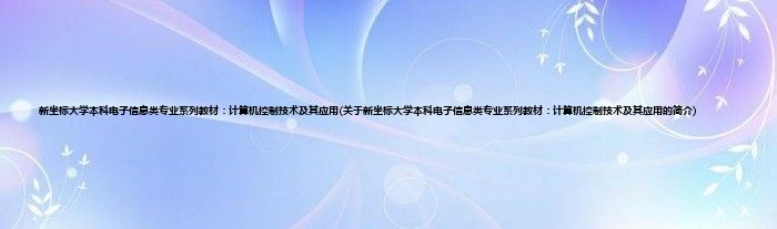 1、 《新坐标大学本科电子信息类专业系列教材计算机控制技术及其应用》是2012年清华大学出版社出版的图书。