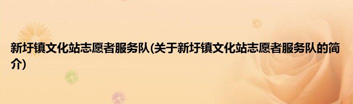 本文关于新圩镇文化站志愿者服务队的简介就讲解完毕,希望对大家有所帮助。