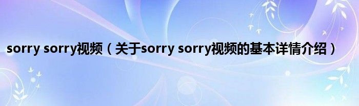 sorrysorry视频(关于sorrysorry视频的基本详情介绍)