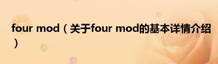 大家好我是小蝌蚪,four mod,关于four mod的基本详情介绍很多人还不知道,那么现在让我们一起来看看吧!