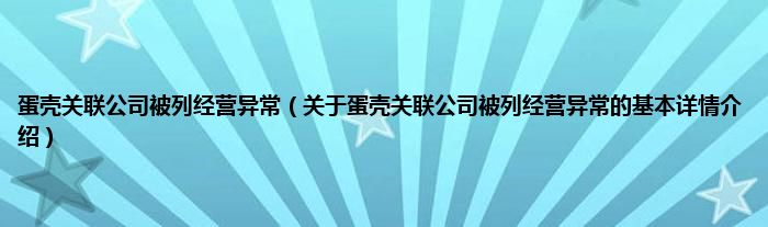 本文关于蛋壳关联公司被列经营异常的基本详情介绍就讲解完毕,希望对大家有所帮助。