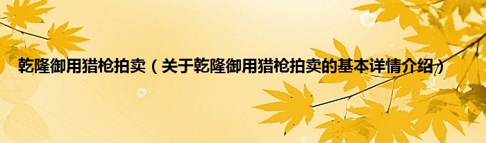 乾隆御用猎枪拍卖(关于乾隆御用猎枪拍卖的基本详情介绍)
