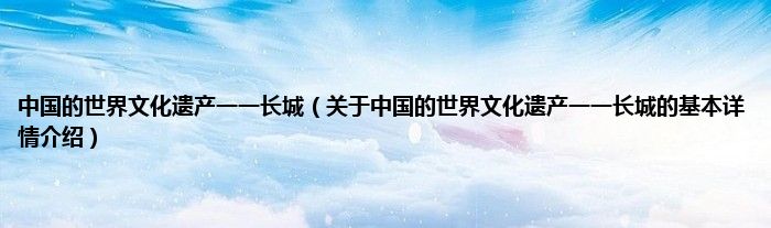 本文关于中国的世界文化遗产一一长城的基本详情介绍就讲解完毕,希望对大家有所帮助。