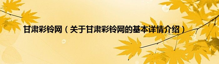 本文关于甘肃彩铃网的基本详情介绍就讲解完毕,希望对大家有所帮助。
