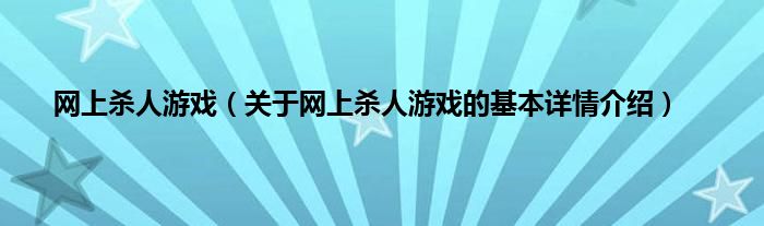 本文关于网上杀人游戏的基本详情介绍就讲解完毕,希望对大家有所帮助。