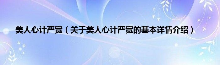 大家好我是小蝌蚪,美人心计严宽,关于美人心计严宽的基本详情介绍很多人还不知道,那么现在让我们一起来看看吧!