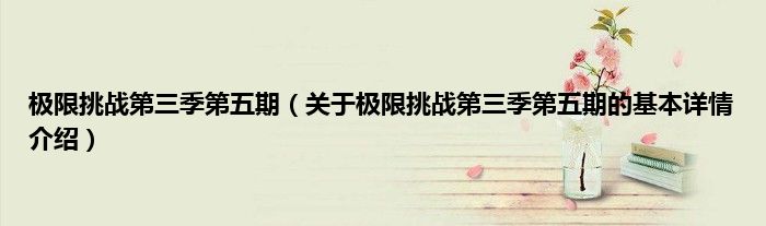 本文关于极限挑战第三季第五期的基本详情介绍就讲解完毕,希望对大家有所帮助。