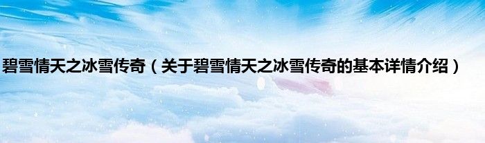 本文关于碧雪情天之冰雪传奇的基本详情介绍就讲解完毕,希望对大家有所帮助。