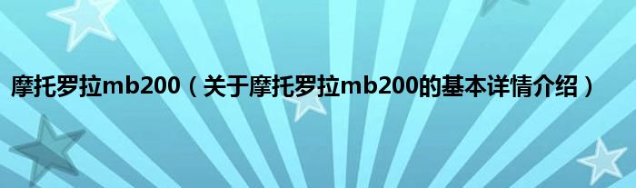 本文关于摩托罗拉mb200的基本详情介绍就讲解完毕,希望对大家有所帮助。