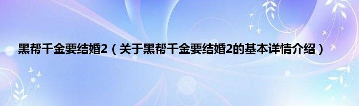 本文关于黑帮千金要结婚2的基本详情介绍就讲解完毕,希望对大家有所帮助。