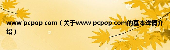 wwwpcpopcom(关于wwwpcpopcom的基本详情介绍)