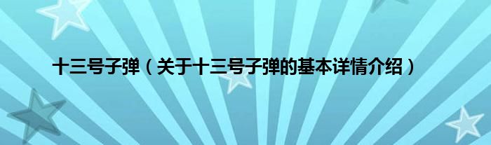 本文关于十三号子弹的基本详情介绍就讲解完毕,希望对大家有所帮助。