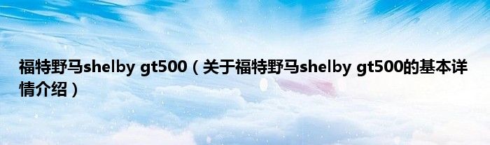 本文关于福特野马shelby gt500的基本详情介绍就讲解完毕,希望对大家有所帮助。