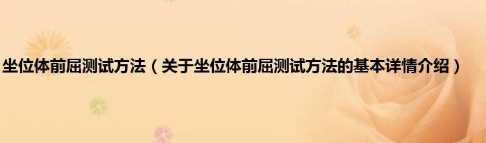 本文关于坐位体前屈测试方法的基本详情介绍就讲解完毕,希望对大家有所帮助。