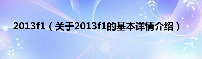 本文关于2013f1的基本详情介绍就讲解完毕,希望对大家有所帮助。