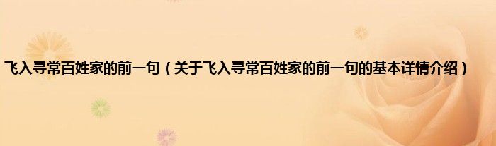 本文关于飞入寻常百姓家的前一句的基本详情介绍就讲解完毕,希望对大家有所帮助。
