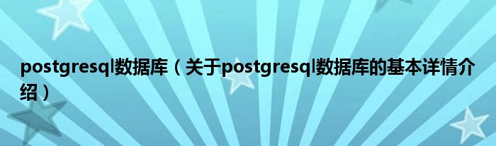 本文关于postgresql数据库的基本详情介绍就讲解完毕,希望对大家有所帮助。