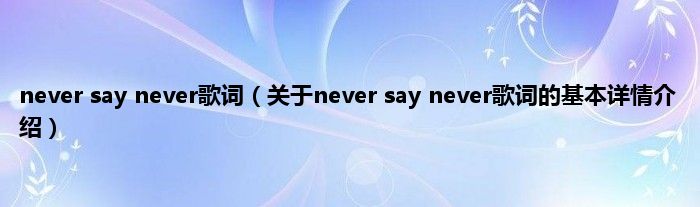 本文关于never say never歌词的基本详情介绍就讲解完毕,希望对大家有所帮助。
