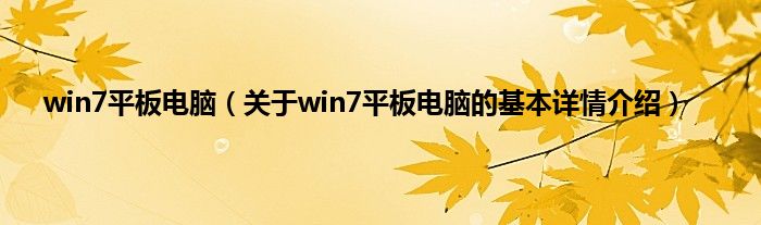 本文关于win7平板电脑的基本详情介绍就讲解完毕,希望对大家有所帮助。