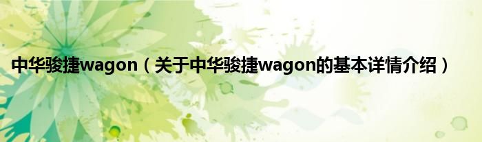 本文关于中华骏捷wagon的基本详情介绍就讲解完毕,希望对大家有所帮助。