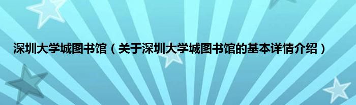 本文关于深圳大学城图书馆的基本详情介绍就讲解完毕,希望对大家有所帮助。