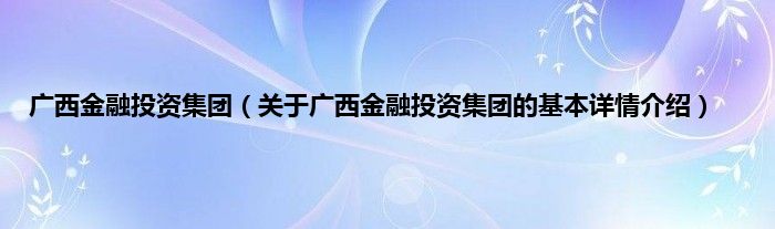 本文关于广西金融投资集团的基本详情介绍就讲解完毕,希望对大家有所帮助。