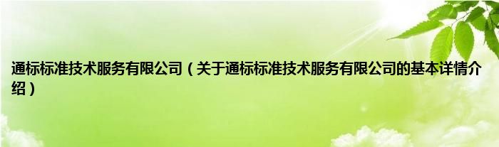 本文关于通标标准技术服务有限公司的基本详情介绍就讲解完毕,希望对大家有所帮助。