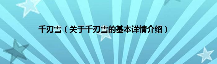 本文关于千刃雪的基本详情介绍就讲解完毕,希望对大家有所帮助。