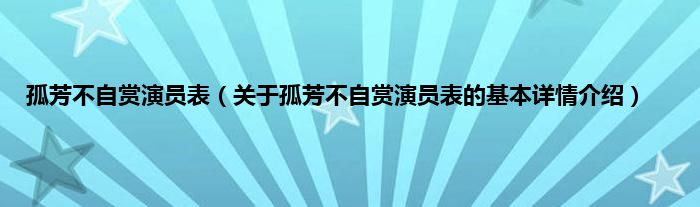本文关于孤芳不自赏演员表的基本详情介绍就讲解完毕,希望对大家有所帮助。