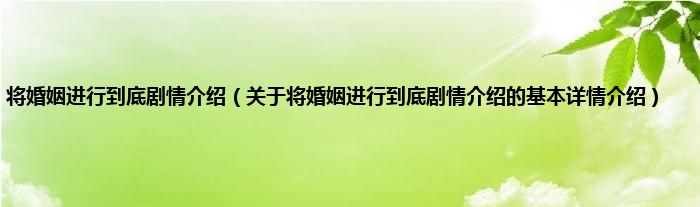 将婚姻进行到底剧情介绍(关于将婚姻进行到底剧情介绍的基本详情介绍)