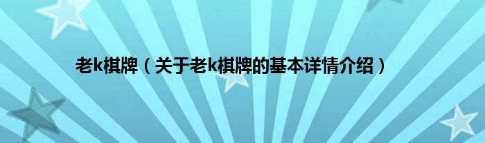 本文关于老k棋牌的基本详情介绍就讲解完毕,希望对大家有所帮助。