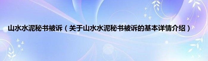 本文关于山水水泥秘书被诉的基本详情介绍就讲解完毕,希望对大家有所帮助。